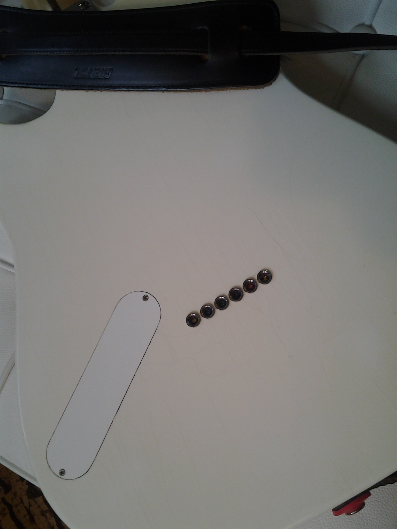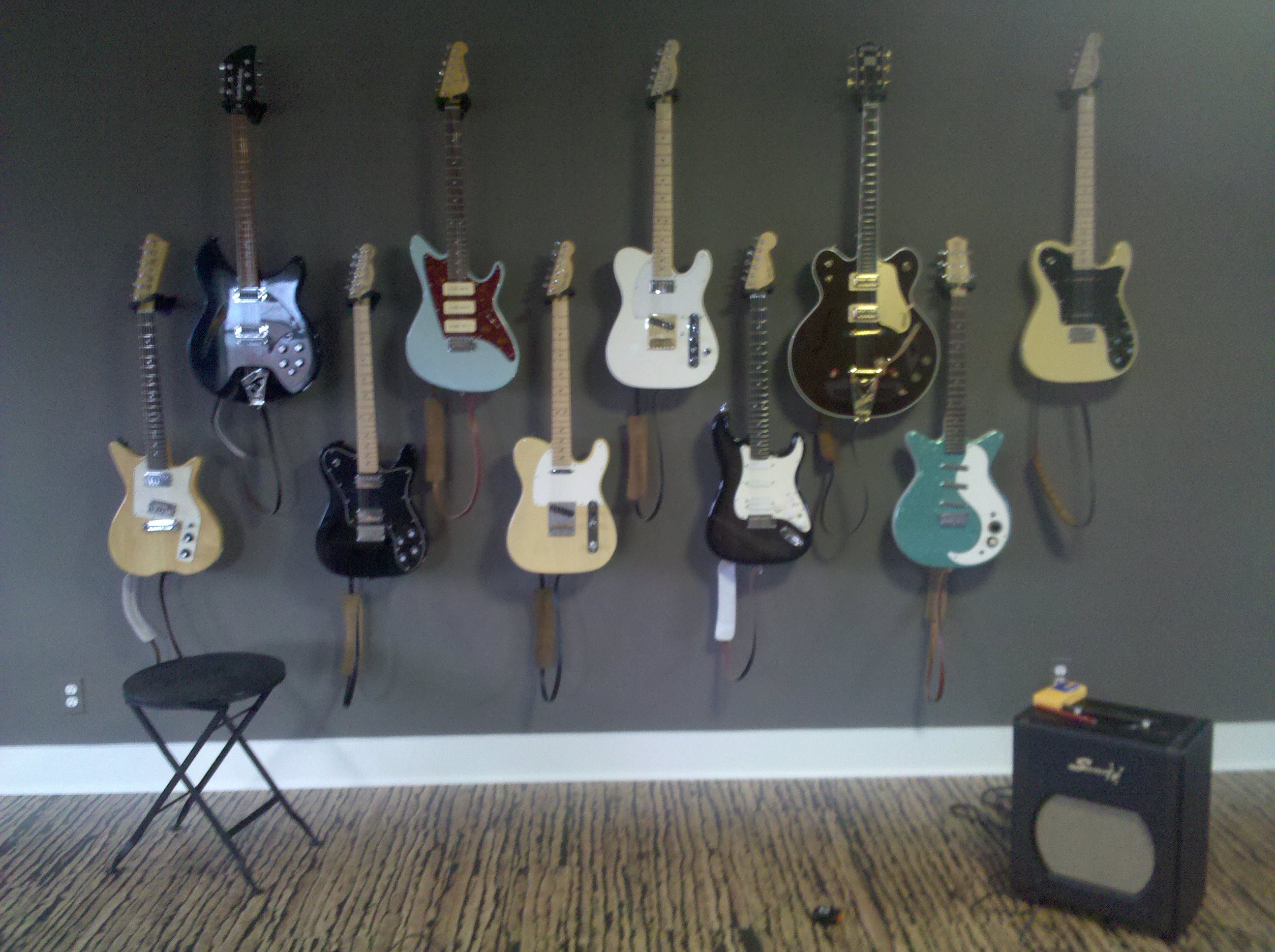 This snapshot precedes the work done on the strat, the rick, the TK 300, and the blonde tele. It’d be easier to eye the differences if the shot were higher resolution–them’s 2006 pixels–or at least better focused. The guitar’s sound is, in 2017, both better focussed and wider ranging thanks to 11-49s from https://www.thegts.co and a mastery string tree from mastery bridge.com (even on the ones without vibratos). Thanks for doing what you do, Gabriel and Woody.